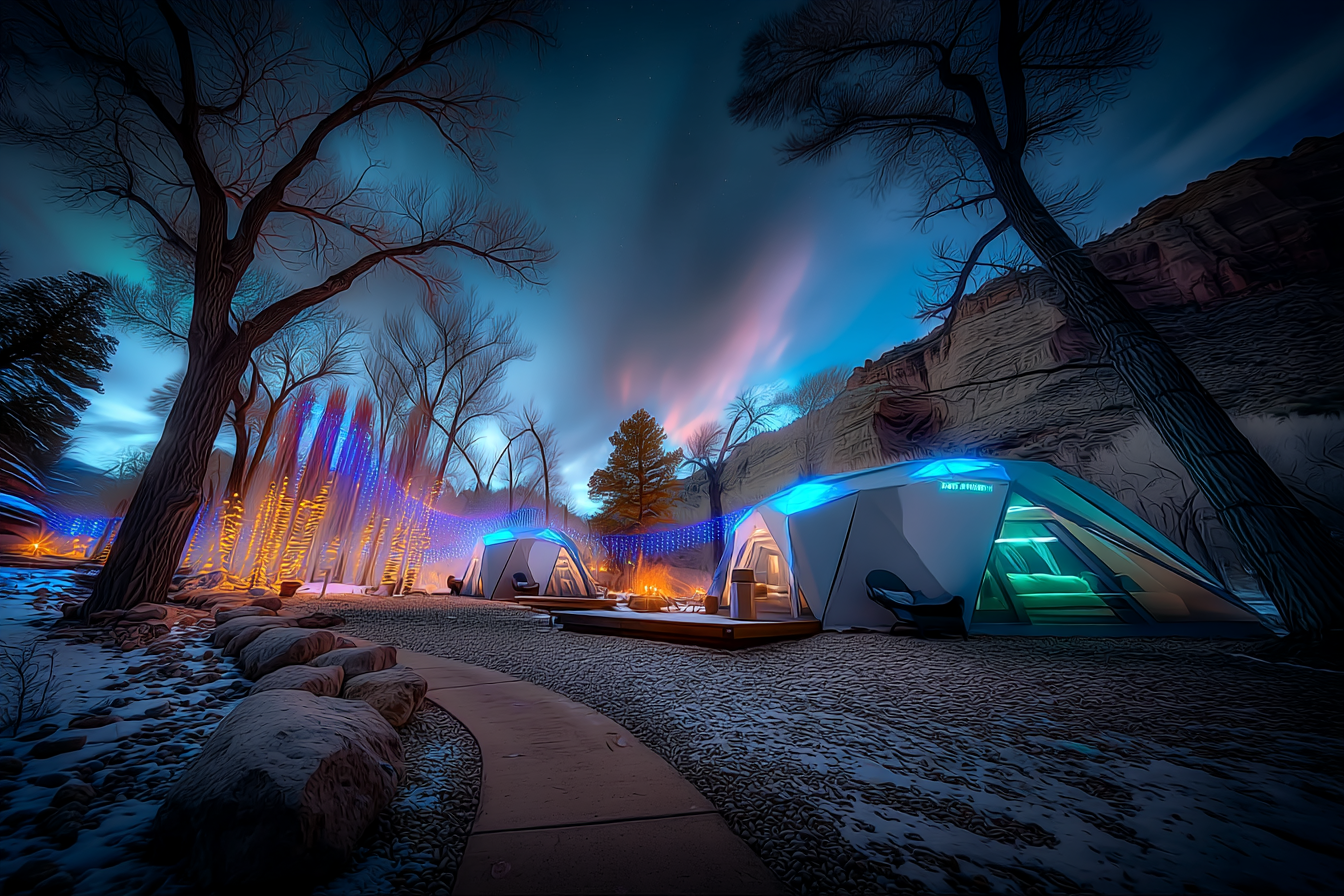 Check-in โ†’ Food-Truck Courtyard โ†’ Six Campsite Groves โ†’ Group-Site Finale